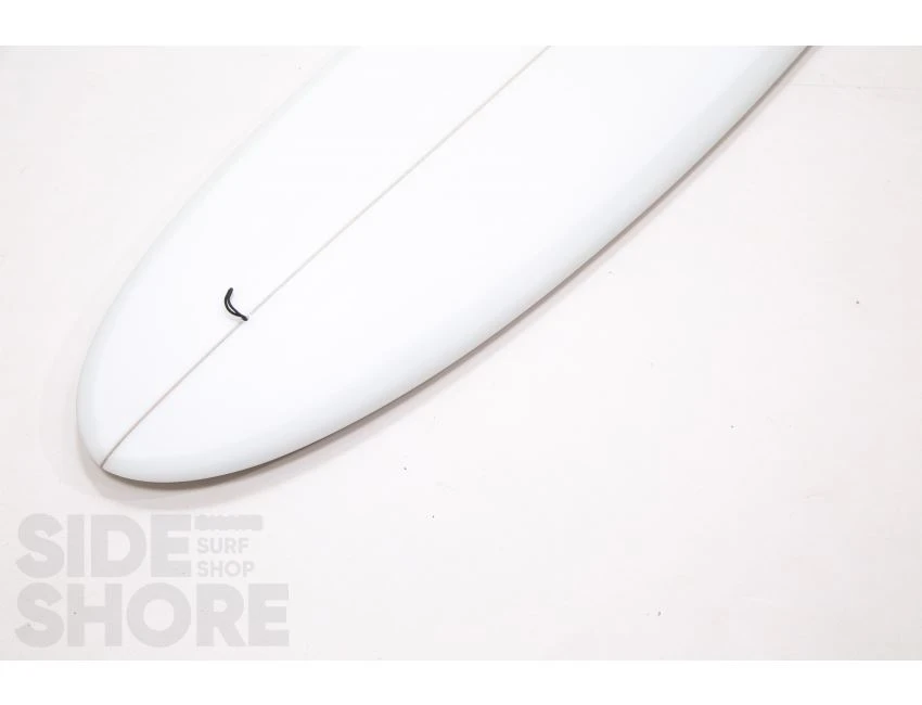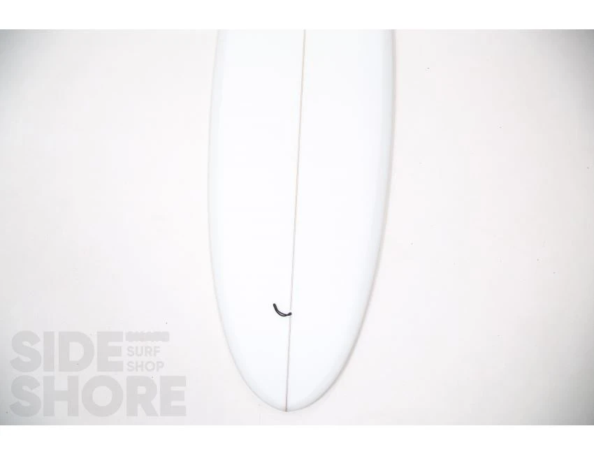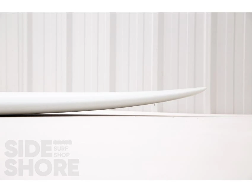 « J’ai conçu cette planche pour être surfée à l’origine sur les front side point breaks, mais j’ai découvert qu’elle était également une planche extrêmement polyvalente sur les beach breaks. Le rocker sur la carène commence par une entrée assez douce dans le nez qui se fond dans un simple concave puis se jette dans un double concave en V. »