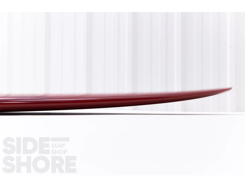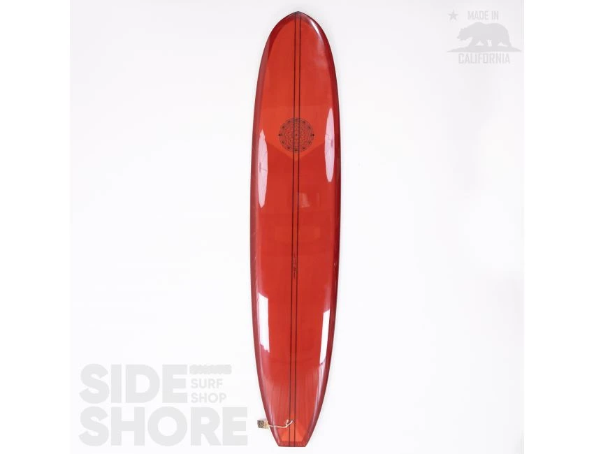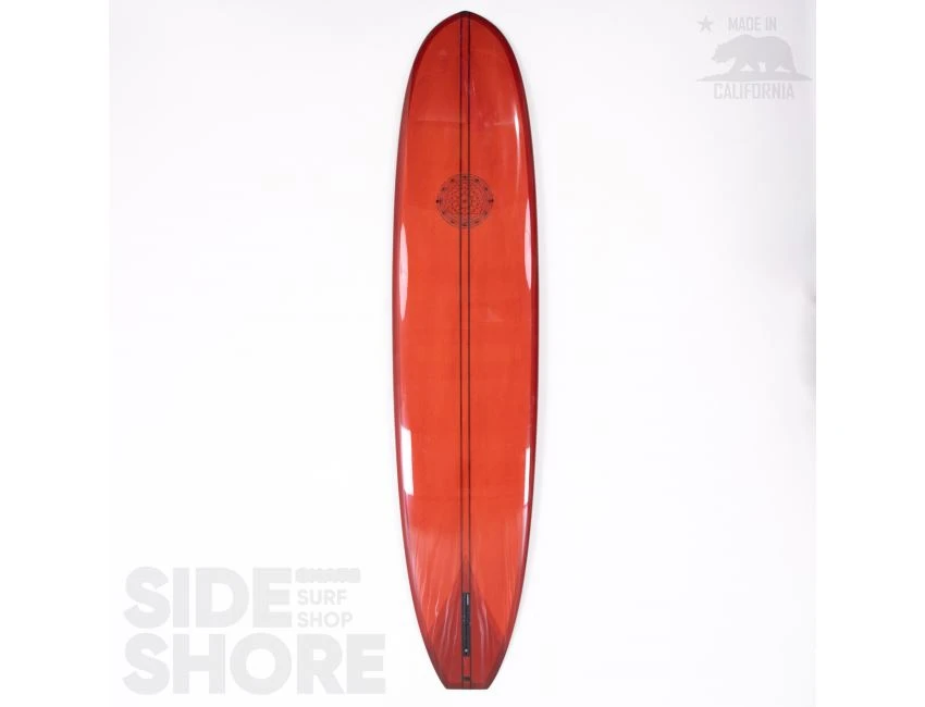 « J’ai décidé d’aborder son concept dans une direction différente et de développer en un longboard hybride avec des caractéristiques de performance. Je voulais une planche avec de la glisse pour contourner les sections critiques tout en maintenant la vitesse, ainsi que la capacité de faire des virages plus serrés plus rapides, dans un sens « enlever les freins », ce qui est courant avec la plupart des noseriders. J’ai ajouté du egde dans la queue qui se transforme en un rail 60/40 au milieu. J’ai conservé certains attributs de l’outline mais je l’ai rendu sensiblement plus étroit dans l’ensemble ; en particulier dans le nez et la queue, tout en gardant son nez pointu caractéristique. Avoir la pointe large légèrement vers l’avant en fait toujours un excellent noserider même avec le nez plus étroit. Enfin, nous avons déplacé le volume du pont dans le nez, compensant le besoin de la largeur supplémentaire dans la version originale. »